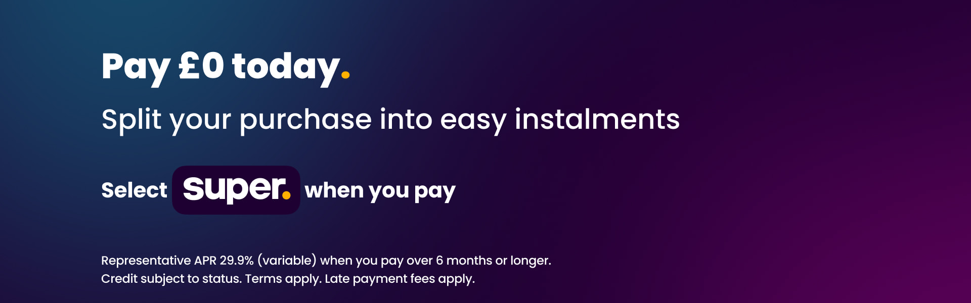 Pay £0 today with Super Credit.